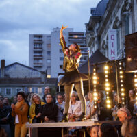 Quatre personnages excentriques, transcendant les normes établies, s’entrelacent dans un ballet de métamorphoses spectaculaires. Revêtant une pléthore de costumes étincelants, ils emportent progressivement le public dans un tourbillon envoûtant de paillettes scintillantes et de lumières éblouissantes. Dans cette féérie visuelle, chacun – indépendamment de son genre, de ses origines, de son âge, de ses capacités, de son style ou de ses préférences – trouve sa place. L’espace se transforme alors en une boîte de nuit à ciel ouvert, un terrain de jeu éclatant d’énergie contagieuse où chacun est invité à se libérer et à se déhancher, créant une osmose festive et salvatrice hors du commun.