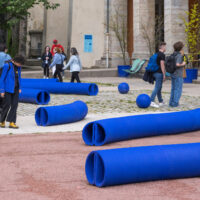 C’est l’expérience chromatique et aquatique que vous proposent les SUBS en passant commande à la jeune artiste Alix Boillot. Pour relever le défi de métamorphoser l’esplanade des Subsistances, elle imagine BLEU, une œuvre à la fois monochrome et pluridimensionnelle. Un bassin-fontaine central avec une agora scénique, deux sculptures-fontaines de part et d’autre de la terrasse, des récupérateurs d’eau de pluie, des oasis de fraîcheur, un jardin suspendu et des drapeaux qui annoncent la couleur… forcément bleue !